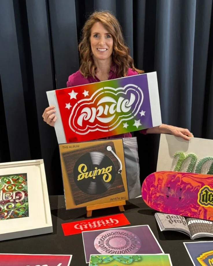 Shop Pride ambigram stencil from $80.00 Ambigram sticker sheet $15.00 Pride ambigram pin $6.00 Doing my part for the planet tote $36.00